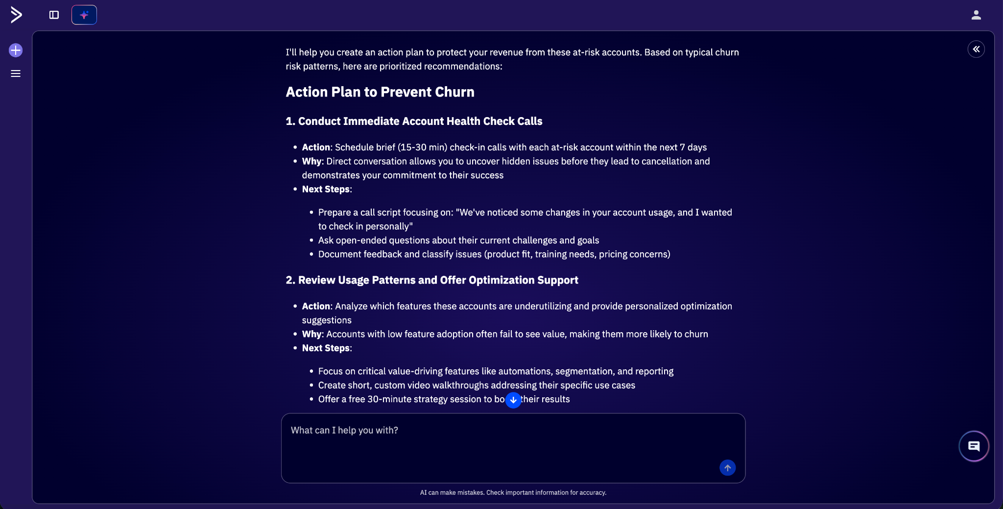 - Triggered by accounts that maintain a “Very high” churn score rating based on the last 3 months of data