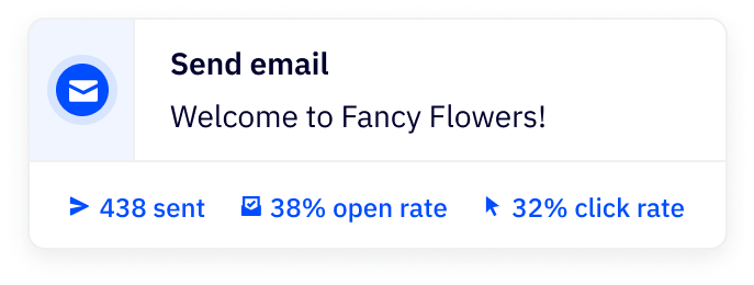 Proporcionamos estadísticas de correo electrónico de primera línea para cualquier acción de "Enviar correo electrónico" que se haya enviado al menos a un contacto.