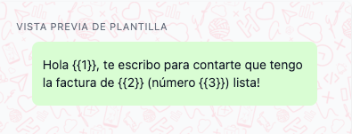 Bonjour {{1}}, je vous écris pour vous informer que la facture de mai (numéro 12345) est prête !